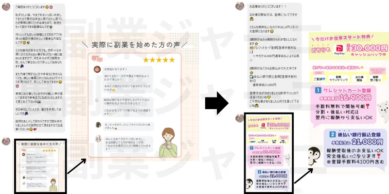 10秒副業診断の副業は初日から2万円GET!や月20万~30万以上の収入UPなど甘い言葉で誘惑してきます。