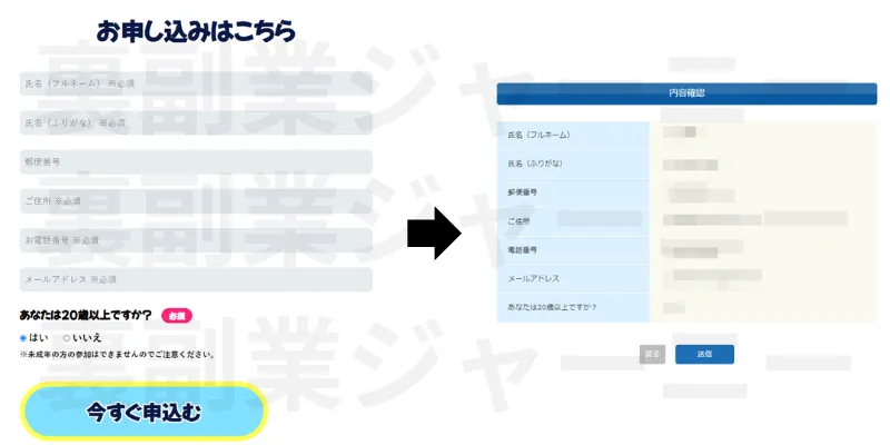 10秒副業診断では後払いが可能なようです。後払いのために申し込みを行います。