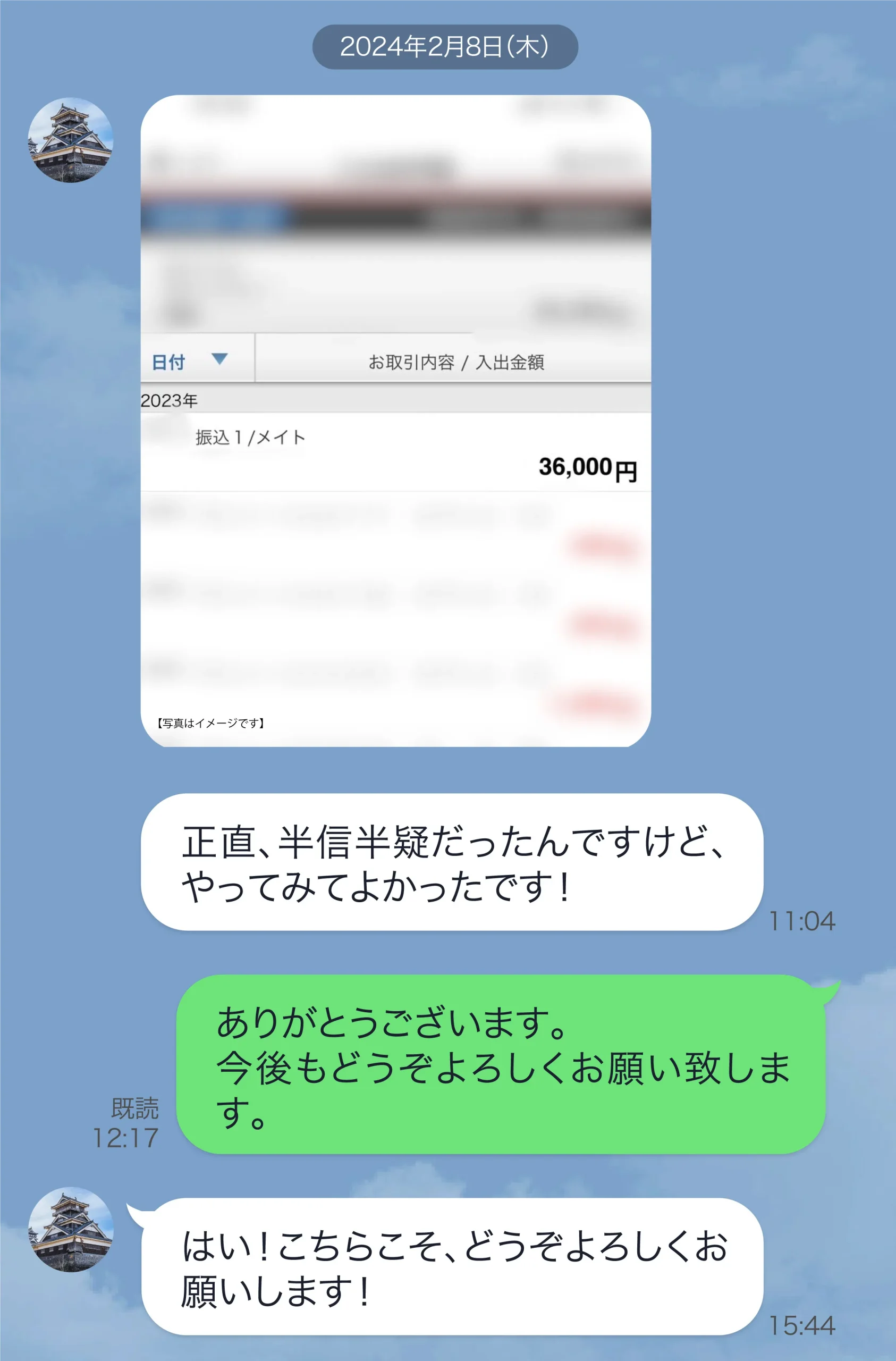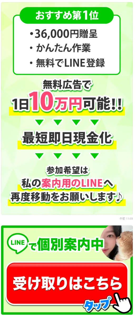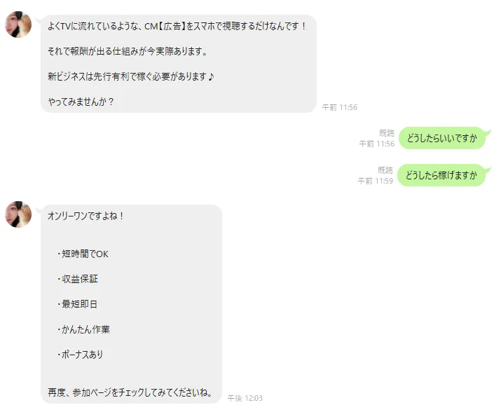 現金の写真や実際に副業を行った人のライン上のやり取りが送られてきました。