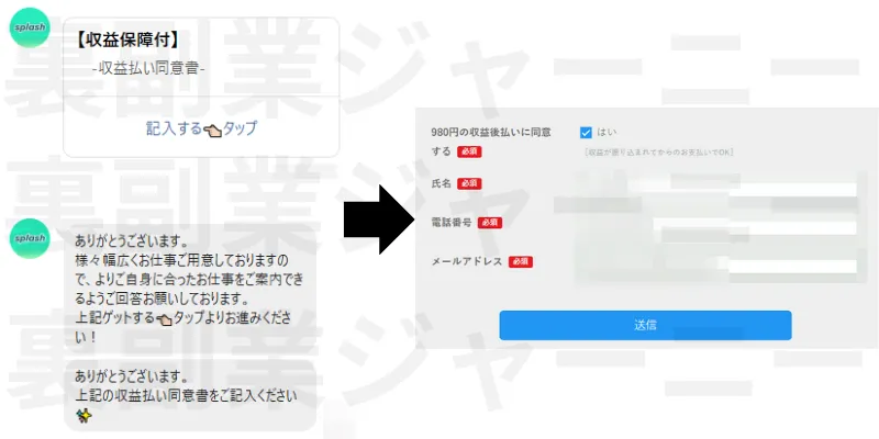 合同会社Akiyoshiの副業に申し込みしてみました。まずLPから★SPLASHとLINE友達登録を行います。そこからはメッセージが送られてきます。