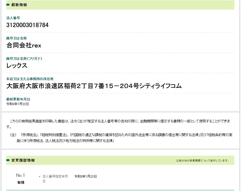 2021年1月22日に番号指定されており、会社として存在はしているようです。