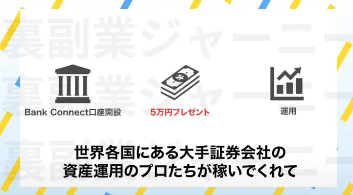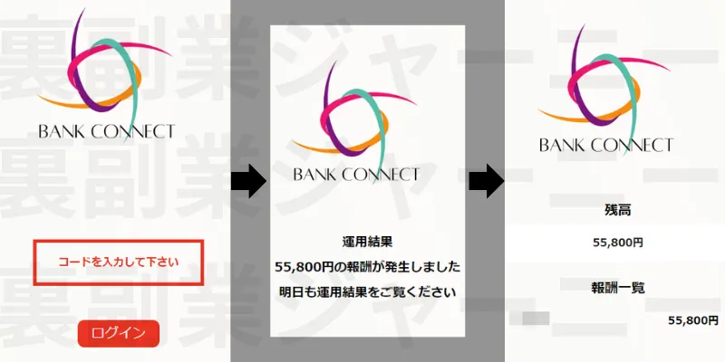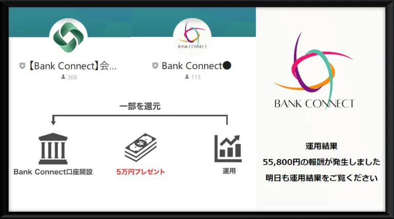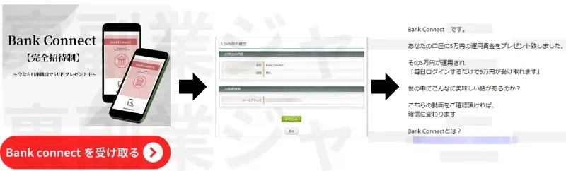 この2つの作業を行うだけで1日5万円の収益が得られるそうです。しかしBankConnectが何かも分からないまま1日5万円と言われても納得いきませんよね。
