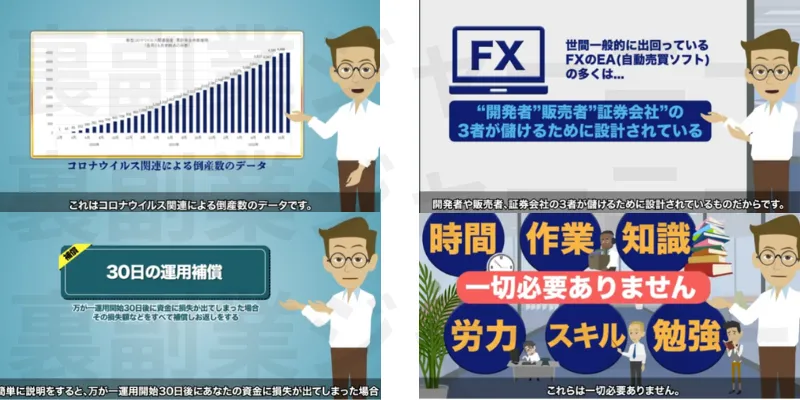 BANK+の動画内では万が一運用開始から30日後に資金に損失が出てしまった場合、その損失などを全てお返しする。とあります。