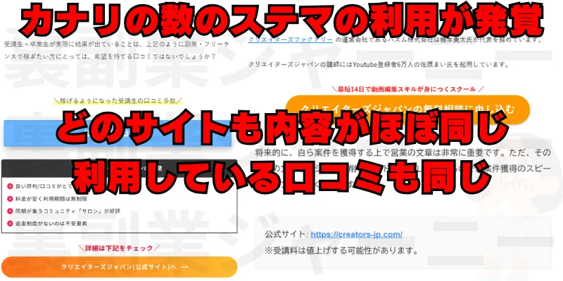 ハズム株式会社「クリエイターズジャパン」の口コミを調べてみると驚くほど良い評価ばかりヒットしました。しかし、残念ながらステマの利用である事が分かりました。