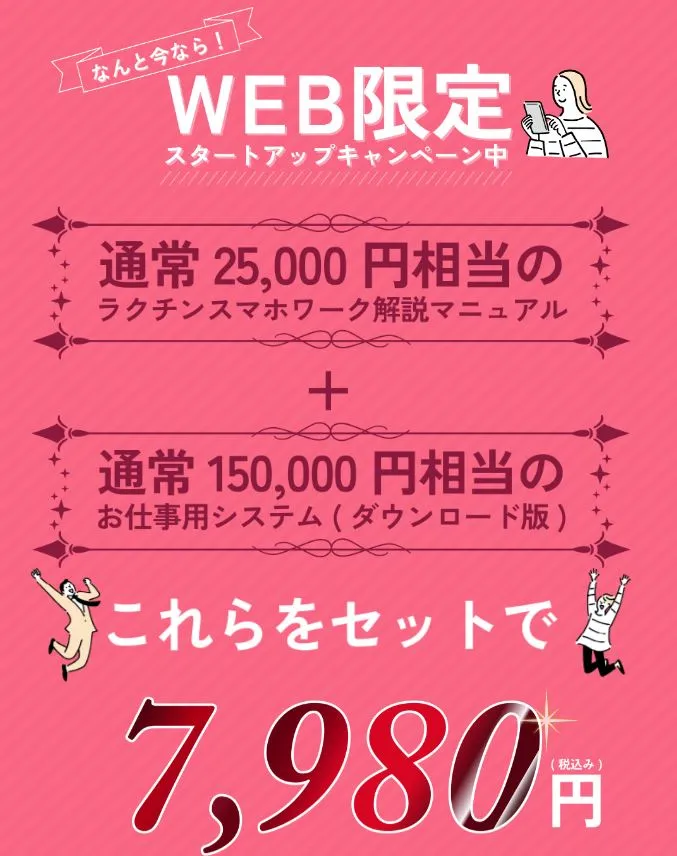 合同会社デバイス(中園裕)の「ラクチンスマホワーク」の参加費用は公式サイトに記載があります。