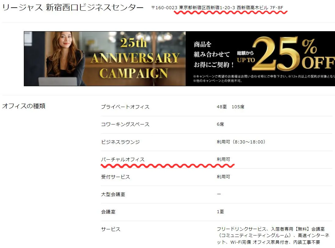 リージャス新宿西口ビジネスセンター7Fが所在地になっているのですが、バーチャルオフィス利用可能なレンタルオフィスだったのです。