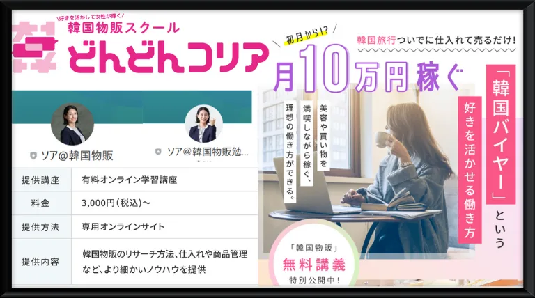 好きな物を自分の手で物販出来たら嬉しいですよね、近年止まらぬ勢いで人気の韓国ですがグッズなどを仕入れて売る韓国物販のセミナーを開いているのが「どんどんコリア」です。