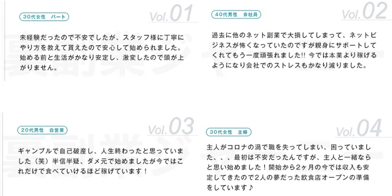 口コミを確認しても副業内容は一切記載がありません。これではどんな内容の仕事をするのか不明なままです。