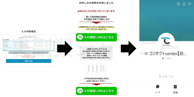 申し込みが完了するとLINE友達追加の流れのようです。ここからメッセージのやり取りが開始されます。