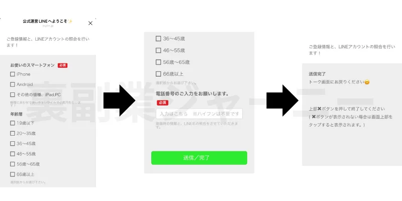 高額プランに枠連・馬連3点・馬連複数点などの記載があったため競馬である事をお気づきの方はいたと思いますが、LPやLINEでは一切競馬と言う文字がありませんでした。