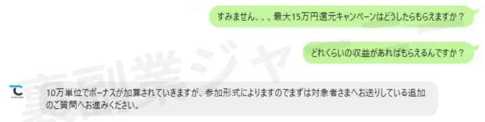最大15万円還元キャンペーンが実施されています。しかしLPやホームページを確認しましたが規約の記載がありませんでした。還元の基準がないため、問い合わせをしてみました。
