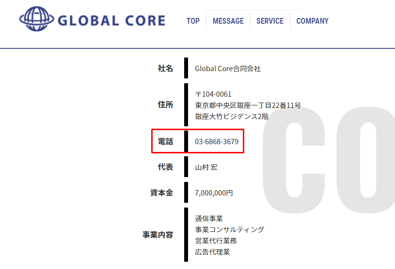 グランドミリオンはGlobalCore合同会社という会社が運営元のようです。