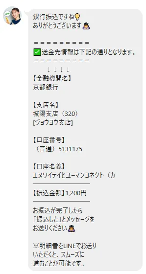 口座名義が『NTTヒユーマンコネクト株式会社』となっていました。参加費用を他社の銀行に振り込む事は金銭トラブルが発生する可能性があります。最悪なケース金額が返金されず再度振り込みするケースもあります。振込先が他社の場合は十分注意が必要です。