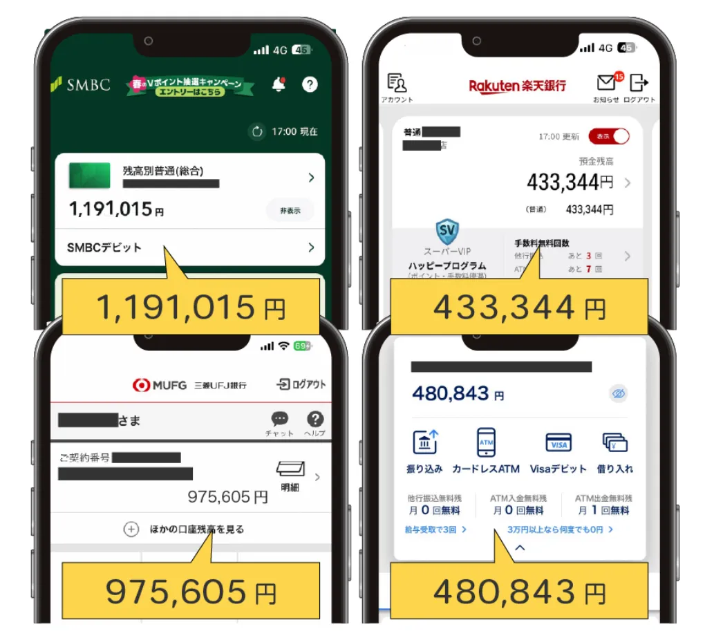 LPにはネットバンキングの残高が掲載されていますが、上記の画面は預金残高の画面であり振込明細画面ではありません。誰かの預金残高を見せられているだけです。