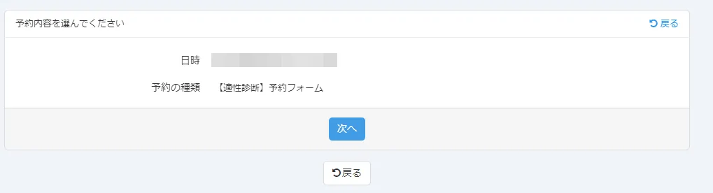 まず、1日も埋まってない日を狙って予約してみたいと思います。時間を選択すると次のページへ遷移しました。