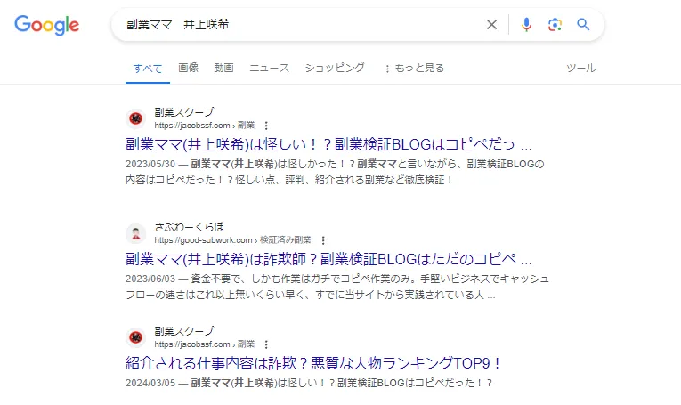 副業ママ(井上咲希)を検索した結果は残念ながら