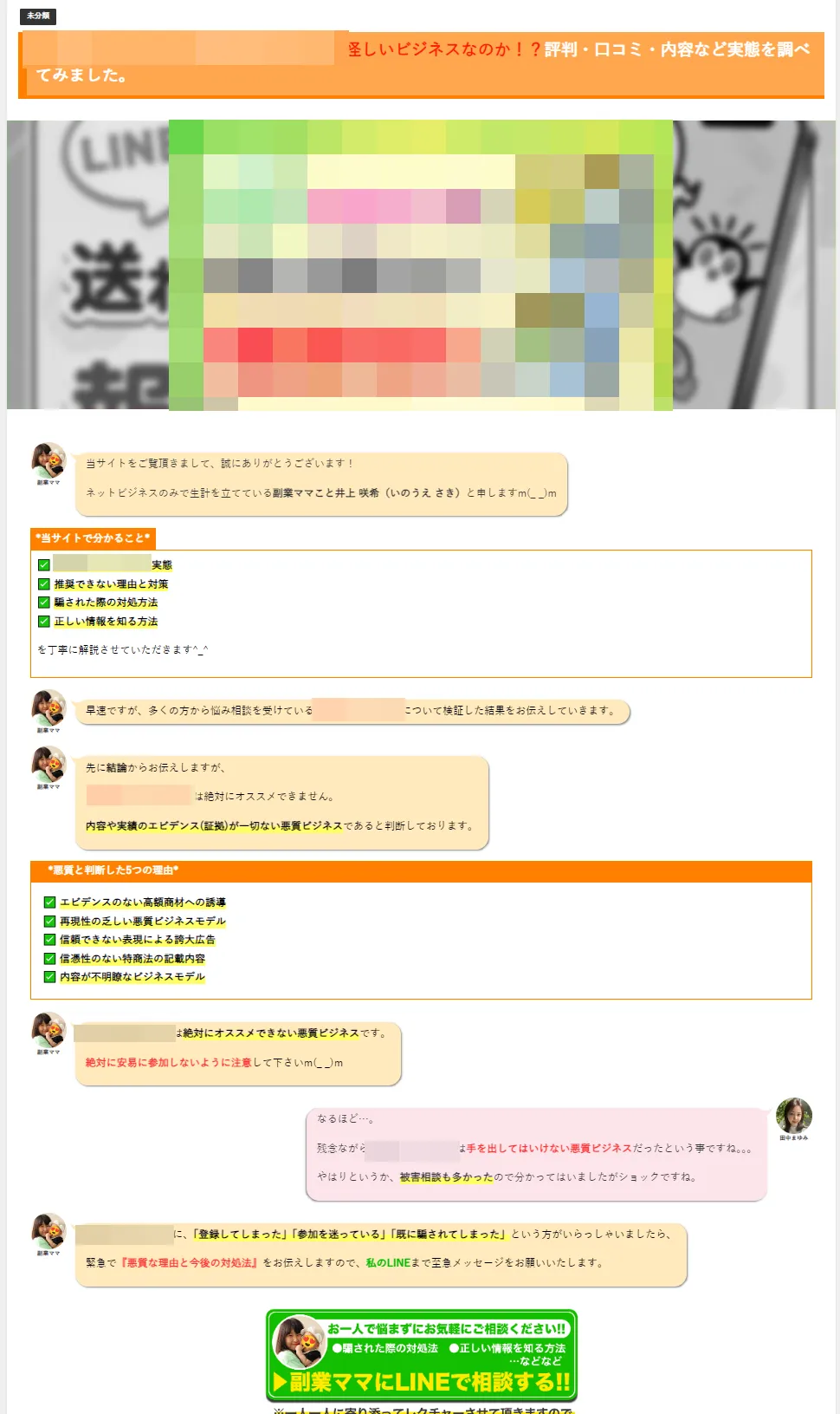 BLOGも複数確認しLINEも登録して調査してきました。BLOGの内容を確認した方なら言わずもがなのことですが、副業ママ(井上咲希)のBLOGもLINE登録もオススメしません。