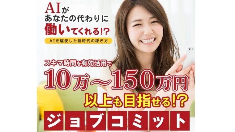 ジョブコミットでは「AIを駆使した新時代の稼ぎ方」で、10万円~150万円以上の収益を目指すようです。