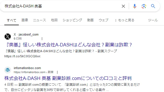 株式会社A-DASHについて検索をしたところ