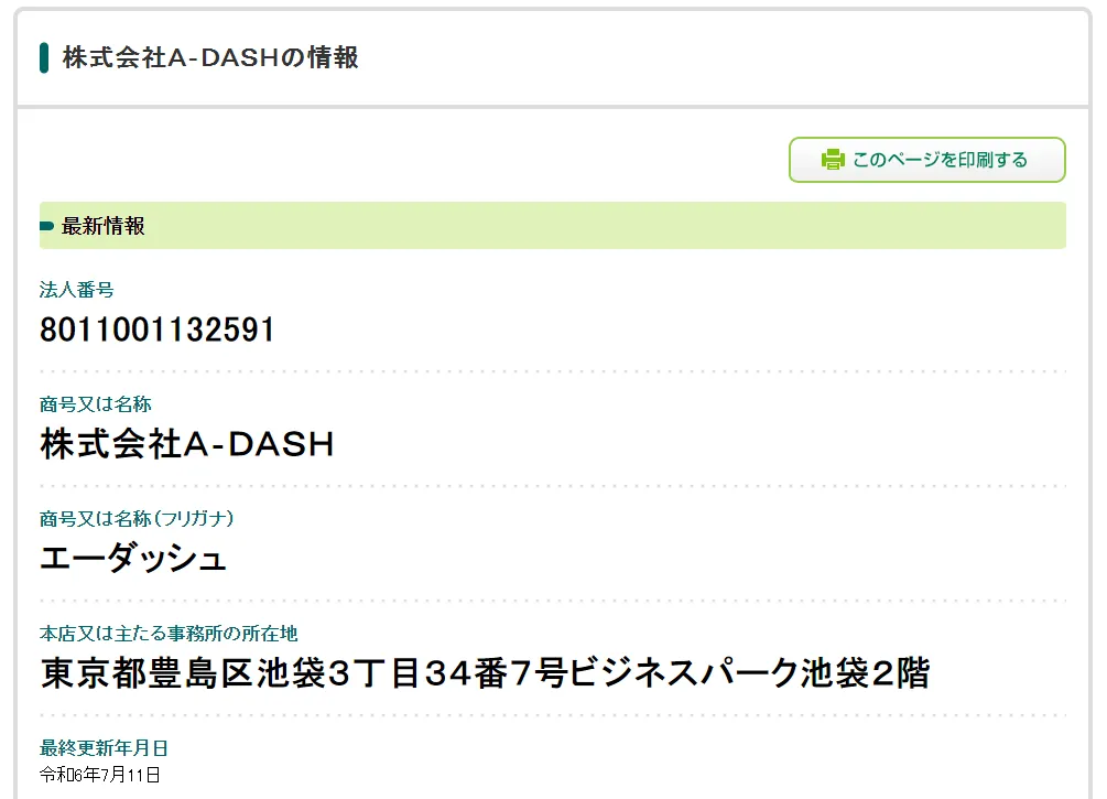 株式会社A-DASHについてですが、まず