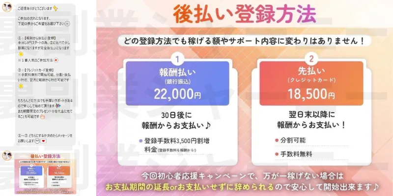 どちらにせよ副業詐欺まがいの副業なので登録するのは危険です。