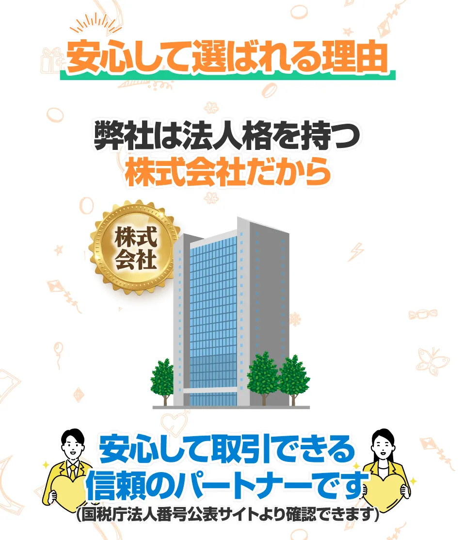 法人登録していても詐欺まがいの行為をしている会社もあるため法人登録しているからと気を許すのはまだ早いです。