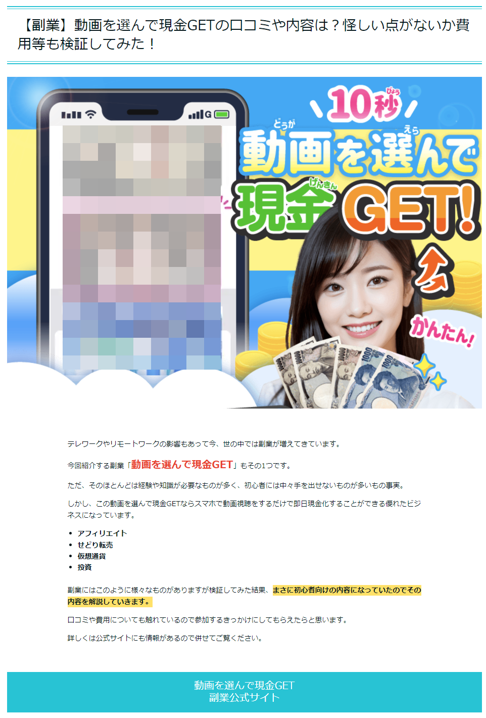 文末には株式会社MOREの副業を促す構成になっていました。ステマである可能性は大いにあります。