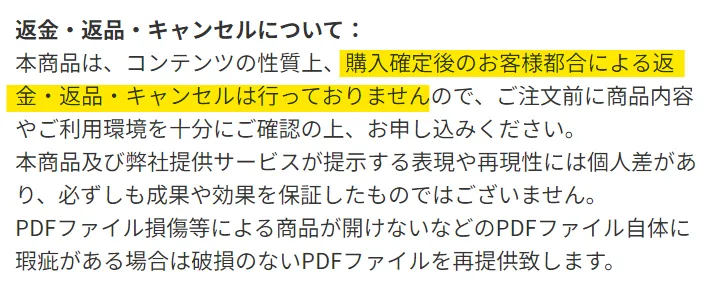 返金・返品・キャンセルは行っておりません。と断言しています。スタートブックは仕事を始めるのに購入必須なのにも関わず返金等が出来ないのは理不尽極まりないですね。