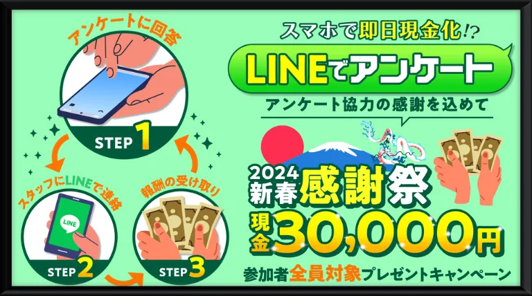 参加者全員対象プレゼントとは太っ腹ですね。アンケートに答えるだけで30,000円もらえるなら副業で1日8万円稼げる話は嘘じゃないのかな!とアドレナリンが溢れ出そうですが残念。30,000円をもらうには条件があります。