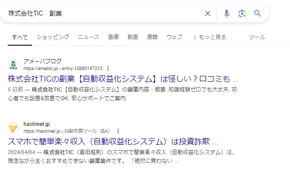 月50万円超えの副業なら良い口コミや評価があると思いましたが、稼げない!副業詐欺!などの口コミばかりでした。さらにSNSでも検索しましたが、株式会社TICの副業で稼げた!と言う口コミは見つかりませんでした。