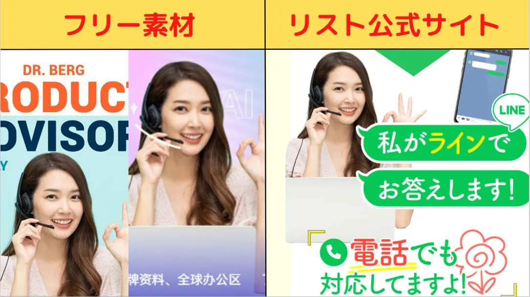 サポートスタッフに見せかけフリー画像を悪用していたりと、平然とウソの宣伝を行っている実態が見受けられます。
