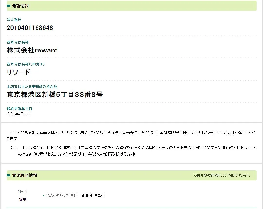 令和4(2022)年7月20日に法人番号指定された新しい会社だと判明しました。