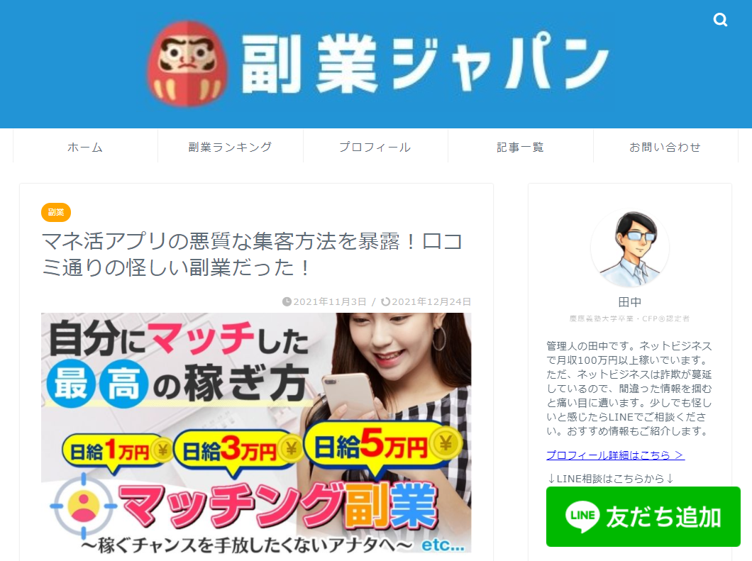 マネ活アプリについて調べている途中、「副業ジャパン」という検証サイトを発見。
