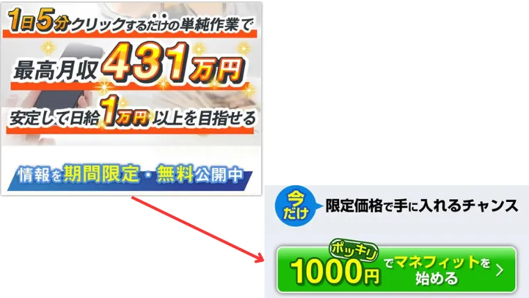 1日5分クリックするだけの単純作業で、最高月収431万円を謳っていました。