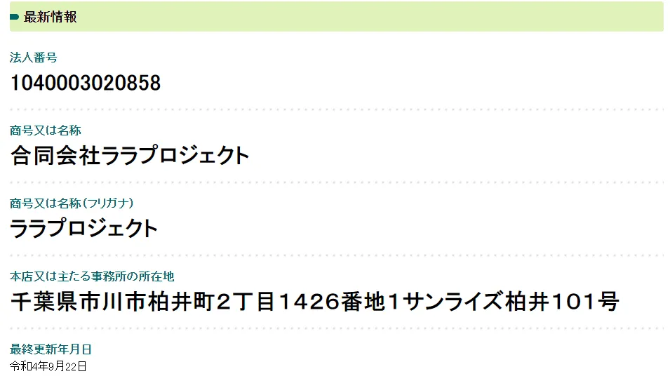 以下、合同会社ララプロジェクトの会社概要です。