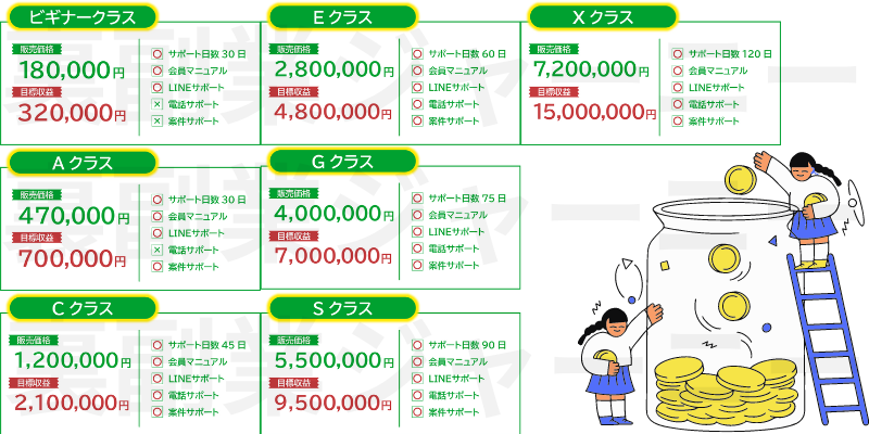 最低18万~最高720万円の高額プランあり