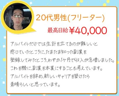 この記事をここまで読んでいただいた方には、実際に稼げる口コミがある副業を試してほしいです。
