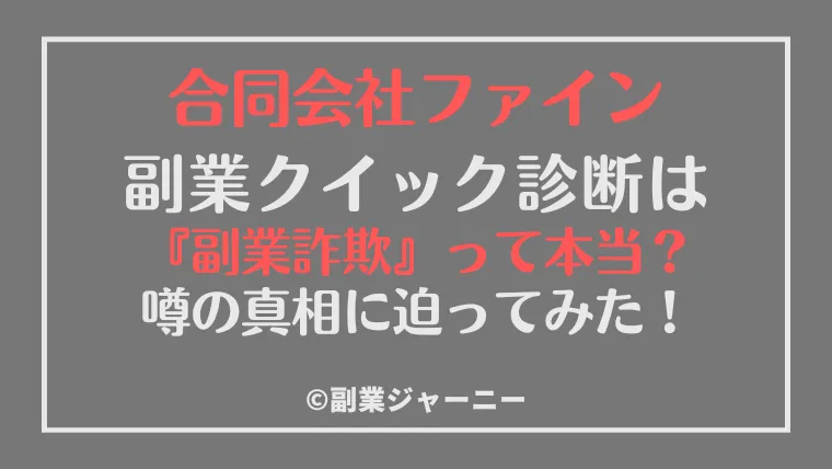 今回は「合同会社ファイン」の「副業クイック診断」という副業サイトについて検証していきます。