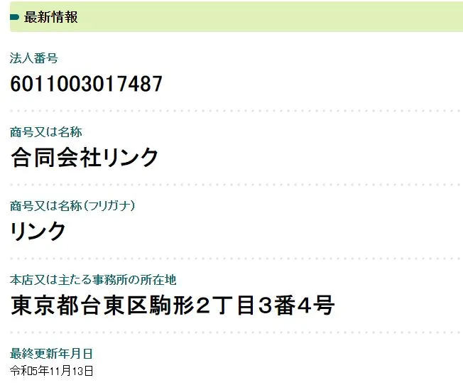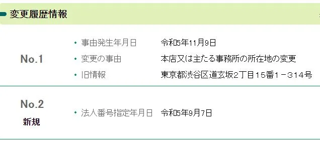 法人検索サイトで見てみると、今年の9月にできたばかりの会社で、会社を登記してからわずか2ヶ月で渋谷から台東区に移転しています。