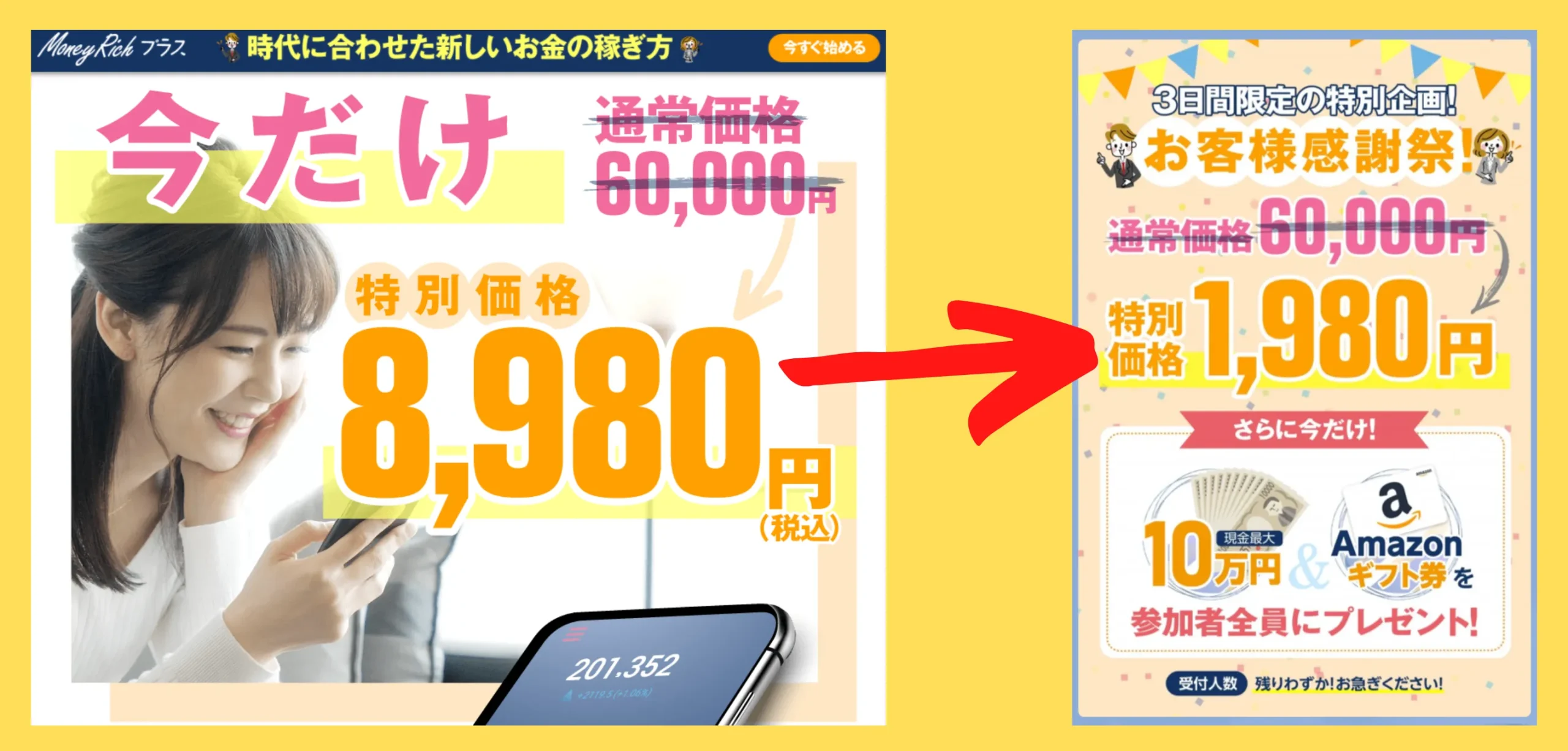 また、マネーリッチのLINEに追加して数日すると、更に割引されて1,980円(税込み)の案内が届きました。