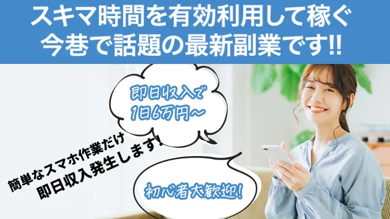 更に、収益が開始当日から発生する即金性の高さも兼ね備えているので、人気が集まる理由にも頷ける副業です。