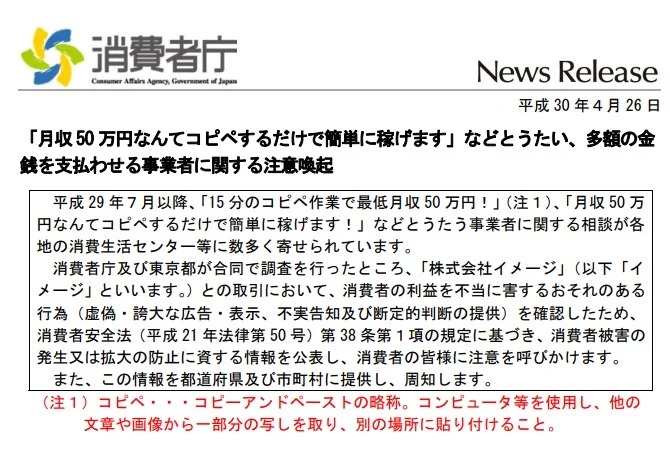 消費者庁も注意を呼び掛けているので細心の注意を払いましょう。