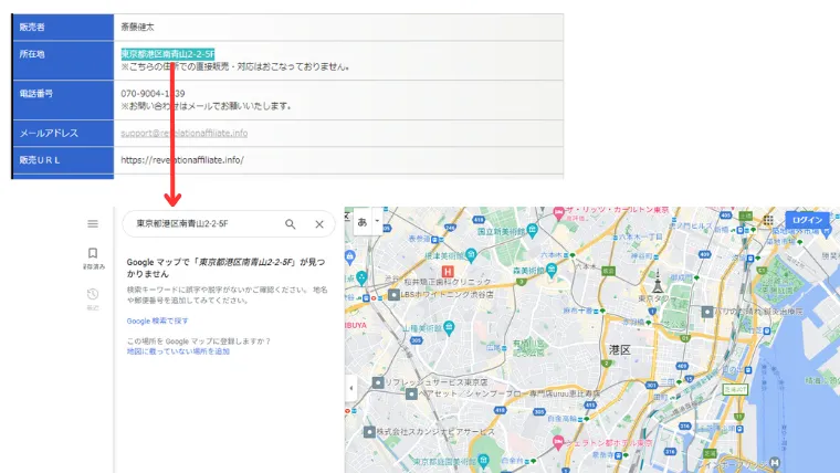 特商法に掲載されていた住所「東京都港区南青山2-2-5F」