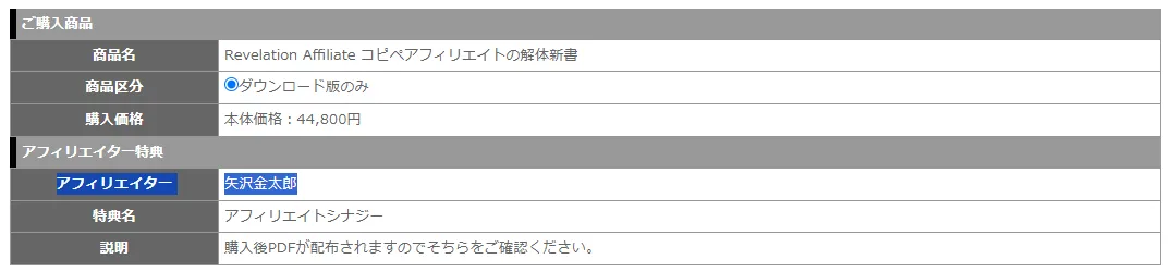 Revelation Affiliateの販売元は「組織運営ではなく、斎藤健太が個人で販売している」ということになります。