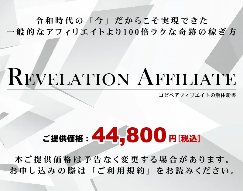 Revelation Affiliateとは、「マネするだけ半不労で稼ぐ」と謳う副業サイトです。