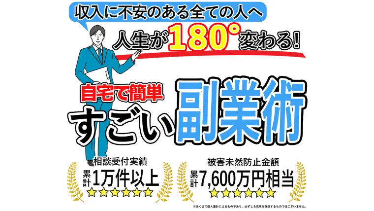 佐野瑞貴のすごい副業術とは、「収入に不安のある全ての人へ|人生が180°変わる」と謳う副業サイトです。