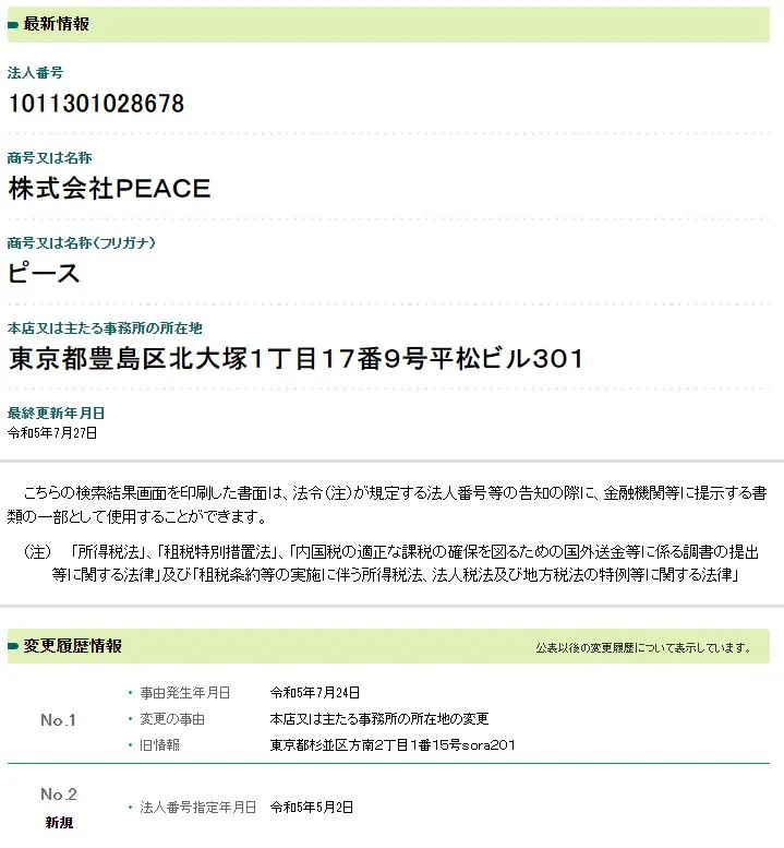 | メールアドレス | info@peace.biz |