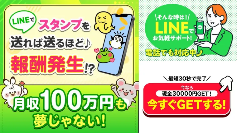 LINEで「スタンプ」を送るだけの作業で月収100万円稼ぐことも夢ではないとのこと。