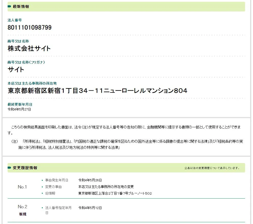 国税庁の法人番号公表サイトも確認できました。