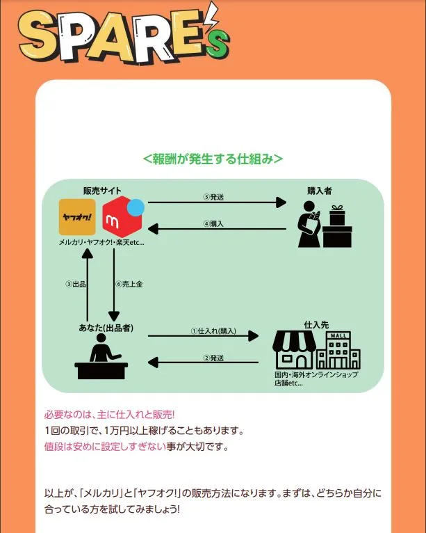 スペアーズの副業は、物販だと判明しました。
